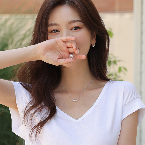 マット シルバーボール レイヤード ネックレス