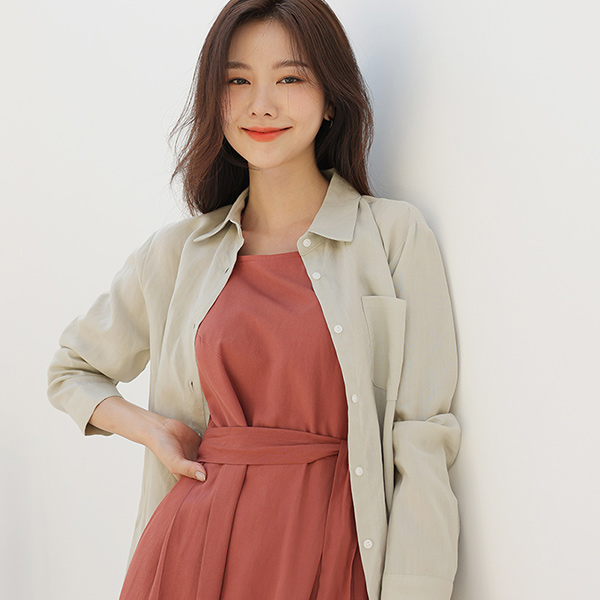 シュガー カラー ポイント ルーズフィット リネン シャツ