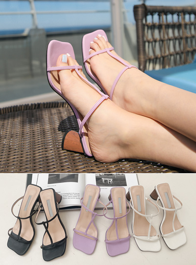 ウエーブ Tストラップ ウッドヒール サンダル