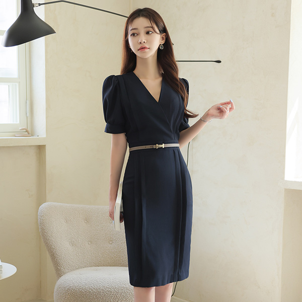 ピンタック サープリス パフ袖 Hライン ワンピース