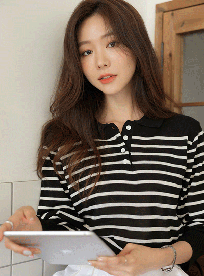 デーリー カジュアル ストライプ カラー ニット