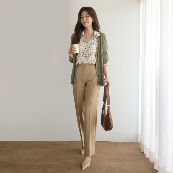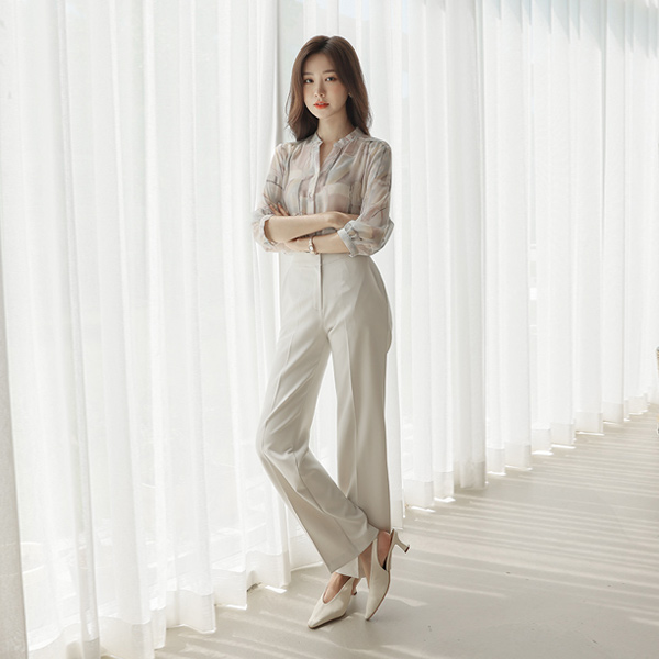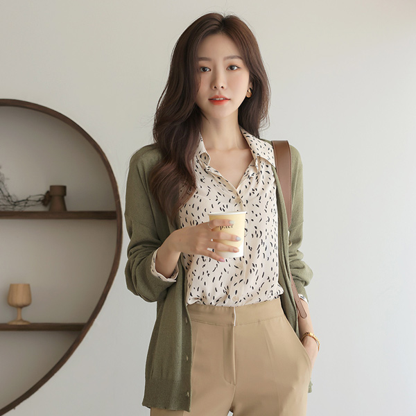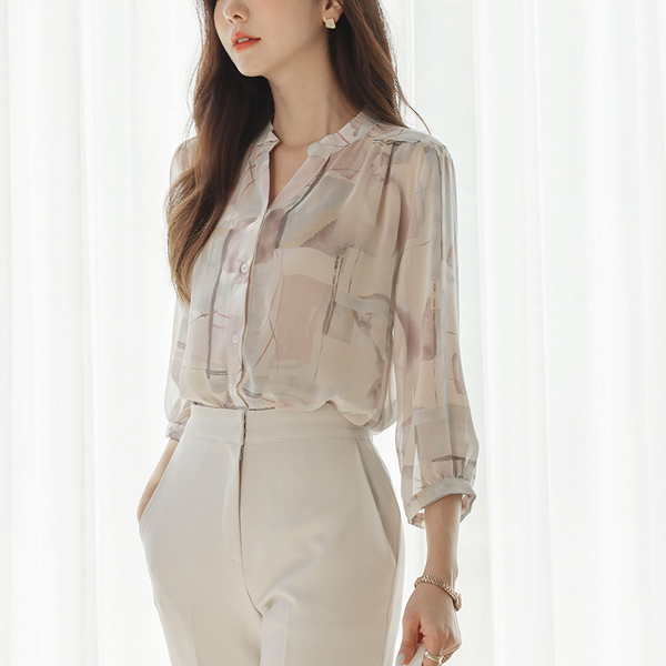 ソフト 捺染 シフォン ステンカラー ブラウス