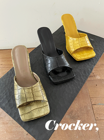 エンボスレザー パタン ミュール スクエアトー ヒール