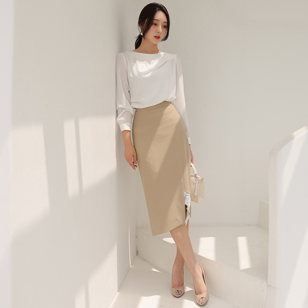 ピュア ドレープ シャーリング カウルネック ブラウス