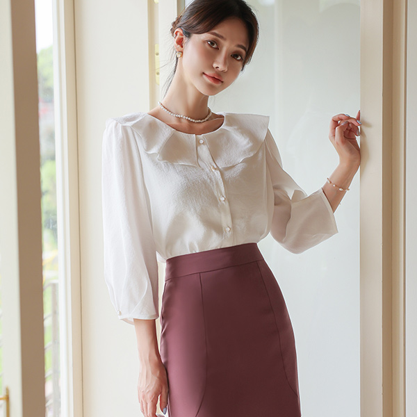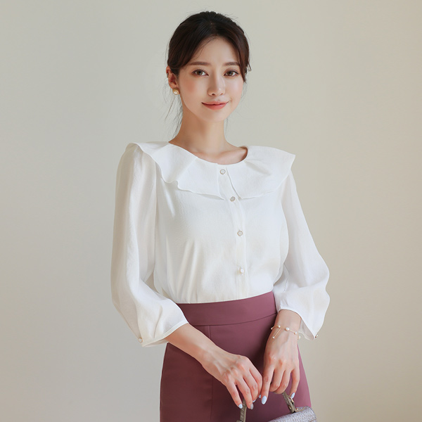 ヘボン フラット カラー ピンタック 袖 ブラウス