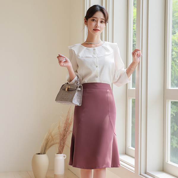 ヘボン フラット カラー ピンタック 袖 ブラウス