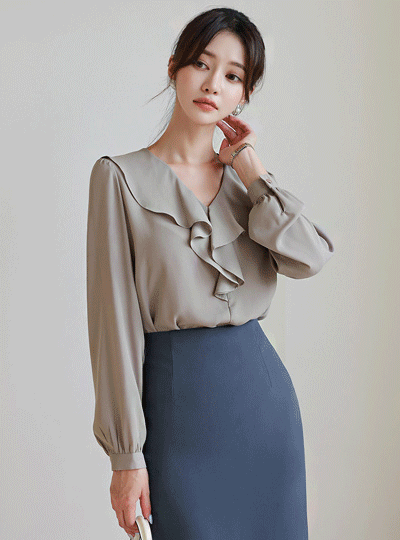 フラウンス ラッフル装飾 ブラウス