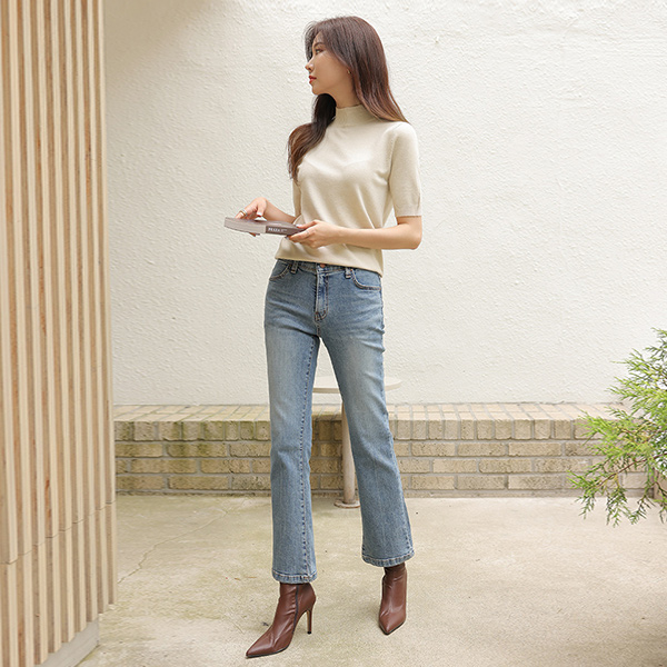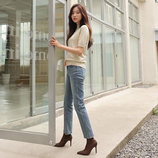 半ハイウエスト ベーシック ソフト リンネンファブリック ニット