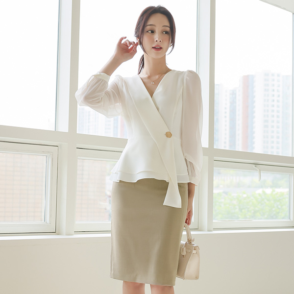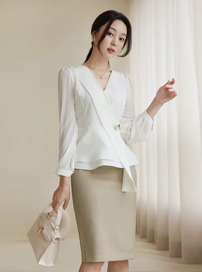 シフォン スリーブ アンバランス ペプラム ラップブラウス