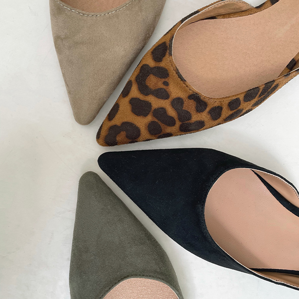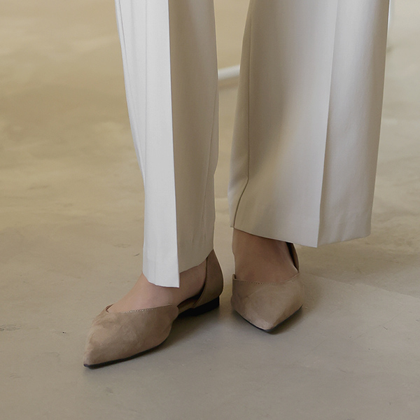 スティレット サイド オープン スエード フラットシューズ