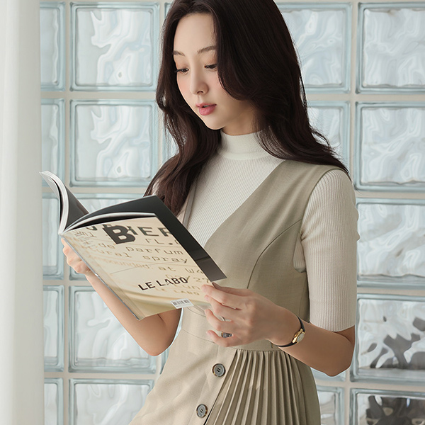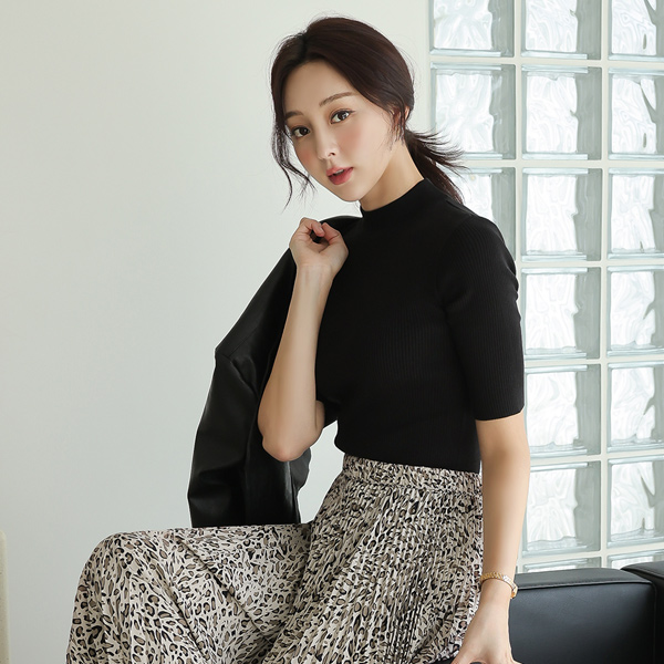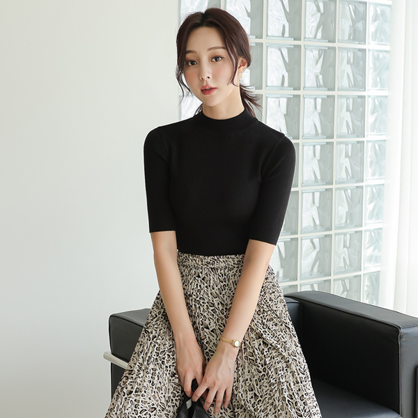 ソリッド 5分袖 ハーフネック ニット