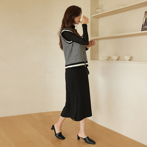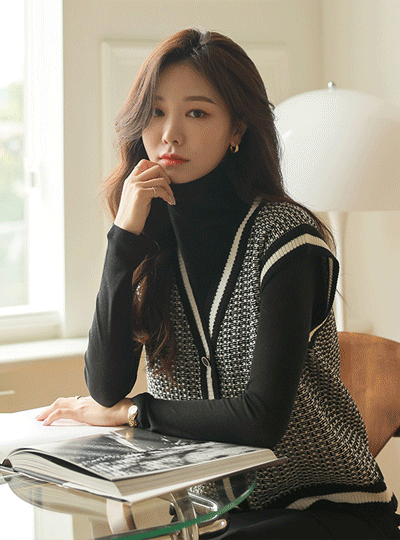 配色 ツイード ニット ベスト