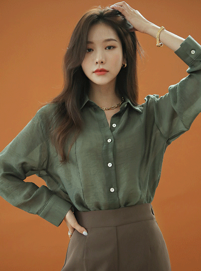 螺鈿 ボタン シースルー テンセル シャツ