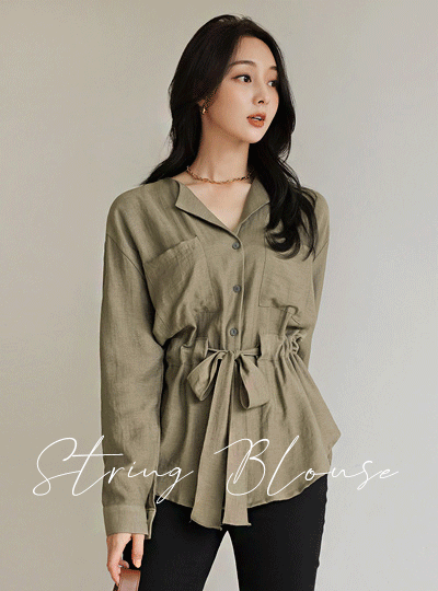 ウイングカラー リンクル ダブルポケット ストリング ブラウス