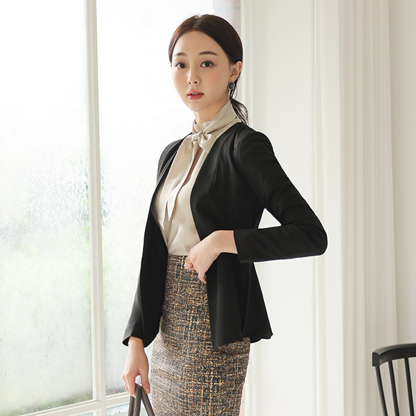 ハーフネック 繻子 パフ袖 タイ ブラウス