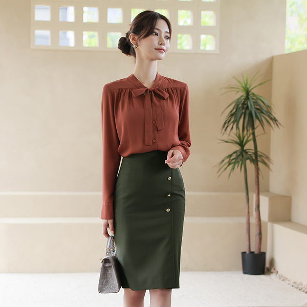 秋 サイド 切開 ゴールドボタン 弾力 スカート