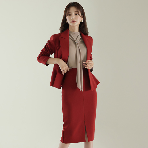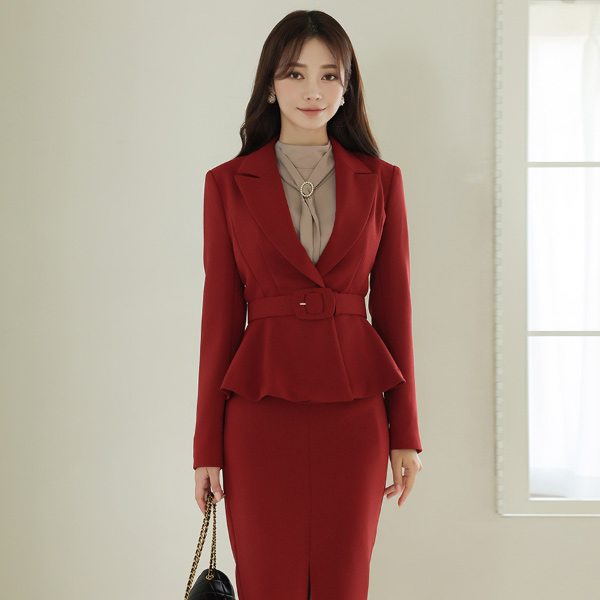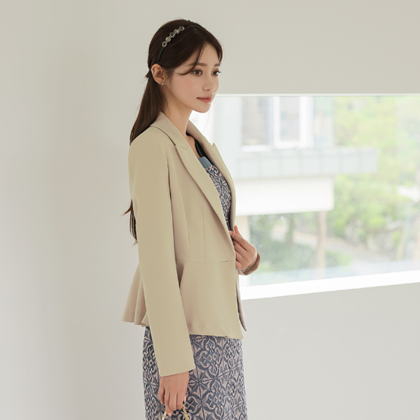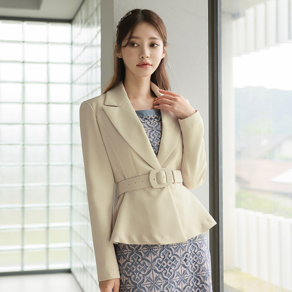 襟広めり ゴールドボタン ベルティード ペプラム ジャケット