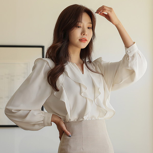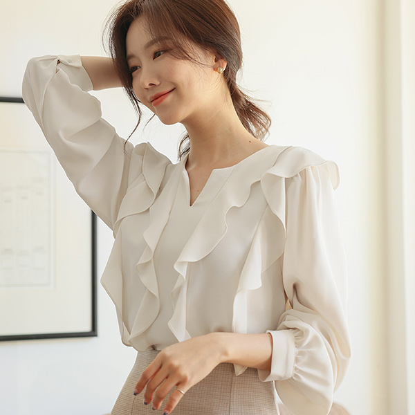 ロマンチック フルライン ラッフル ウエーブ ブラウス