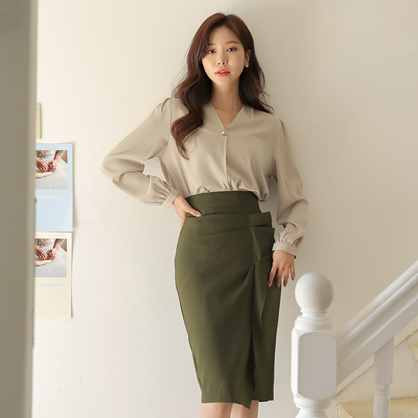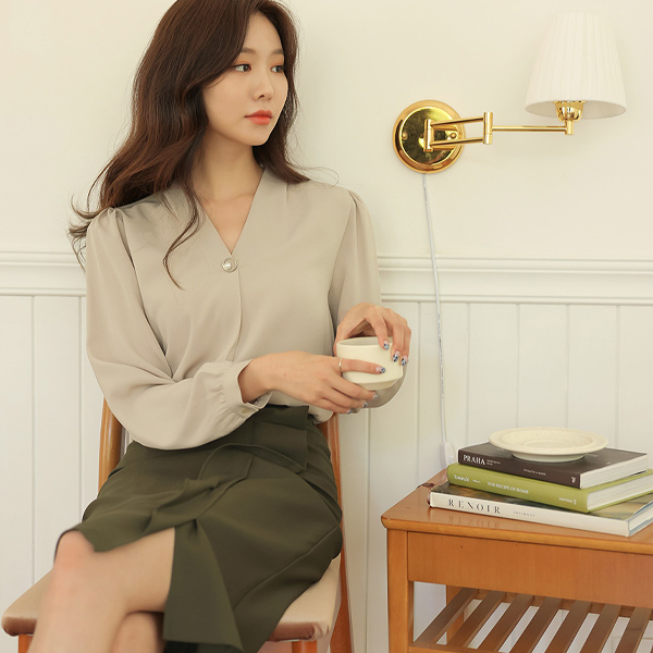 ブイネック ゴールドリング 真珠 ポイント ブラウス
