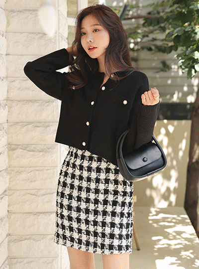 真珠 ボタン デーリー フォーマル クロップド カーディガン