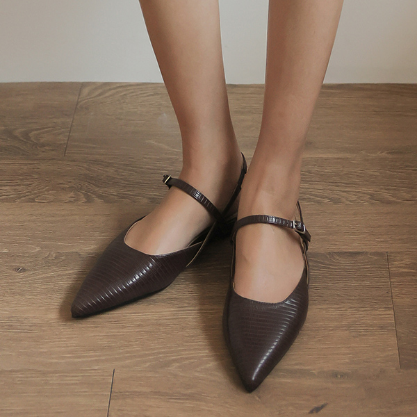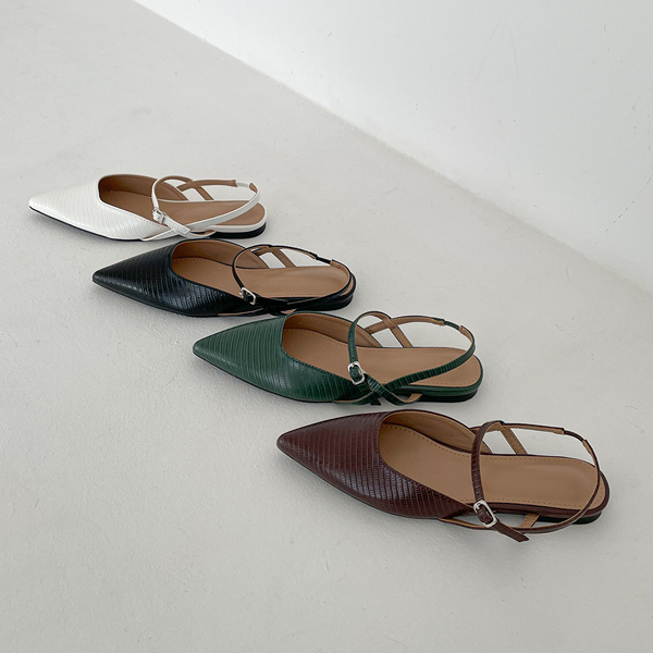 蛇皮紋 スティレット スリングバック フラットシューズ