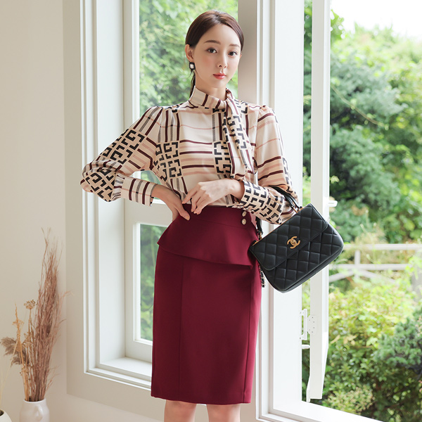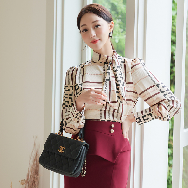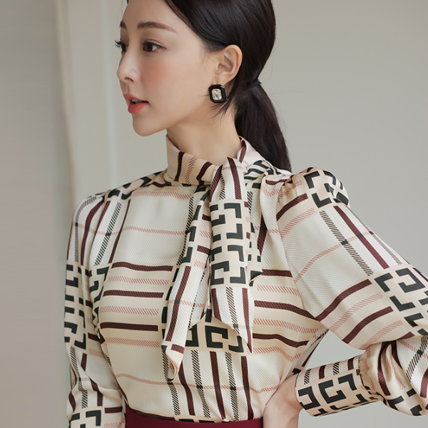 PROVENCE ミニ スカーフ サテン ブラウス