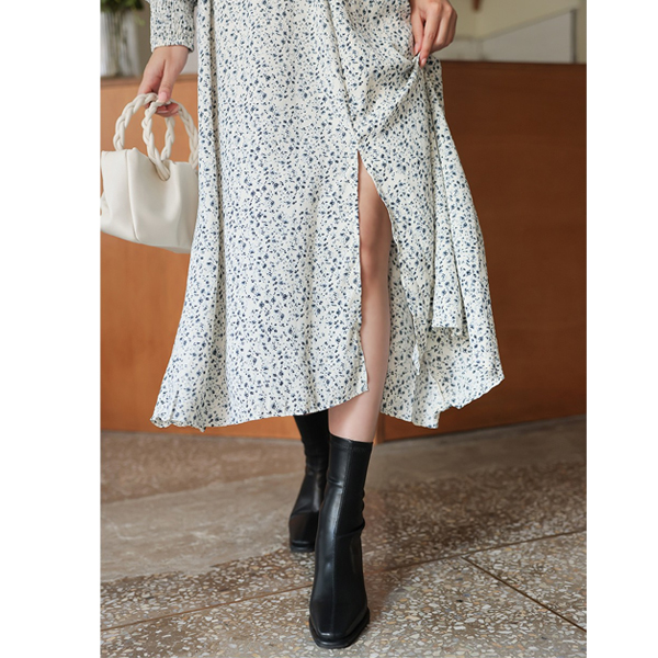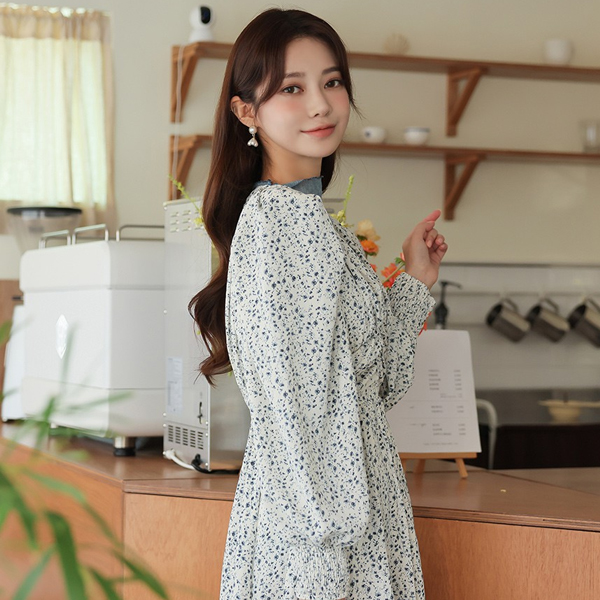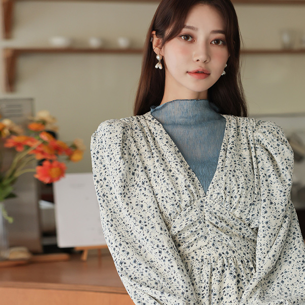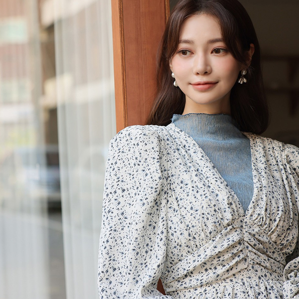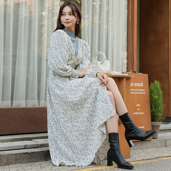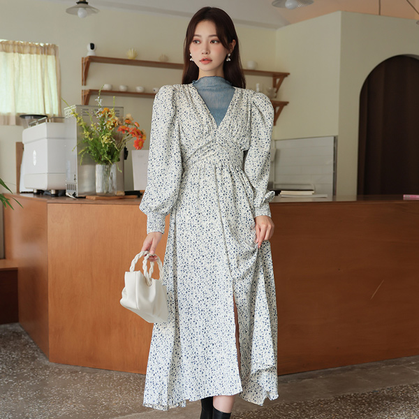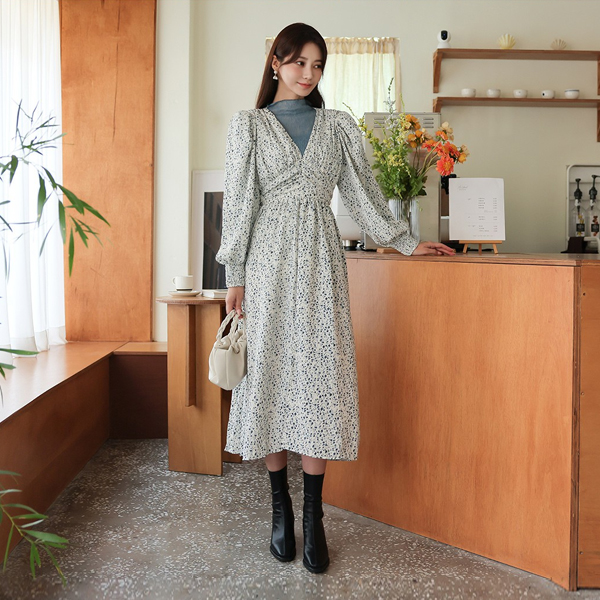 ODE フルライン パフショルダー シャーリング ロングワンピース