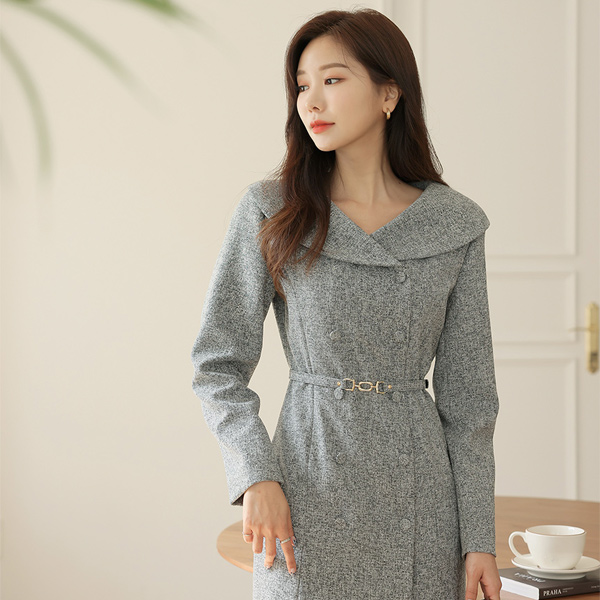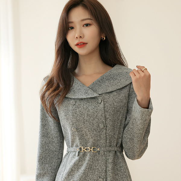セーラー カラー ゴールドバックル ベルティード レディー ワンピース