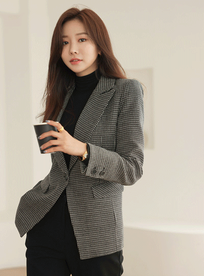クラシック ワンボタン テーラード カラー チェック ジャケット