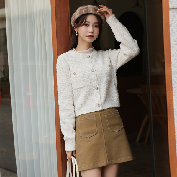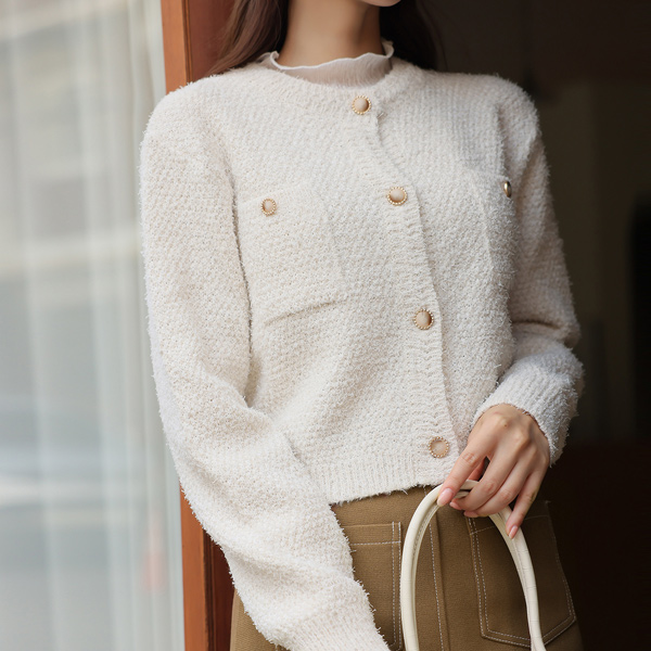 ゴールドボタン ポケット フリンジ ツイード ニットガーディガン