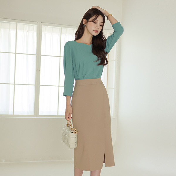 ODE ピンタック袖 ハートネック 切開 ブラウス