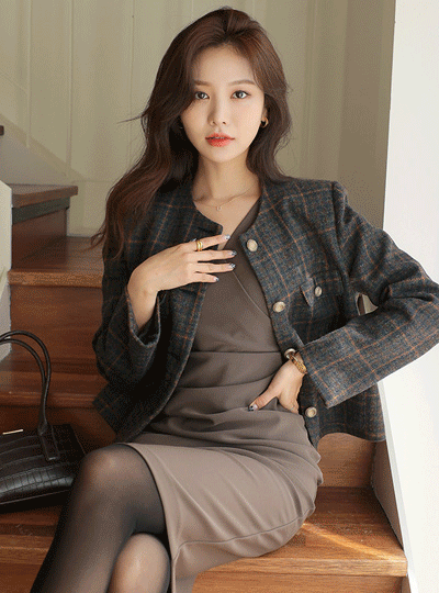 ぽかぽかした チェック ゴールドボタン ウール フォーマル クロップド ジャケット
