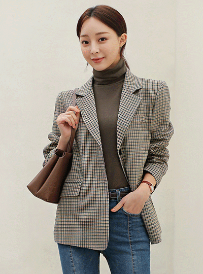 マルチ プラッド チェック シングル ルーズフィット ジャケット