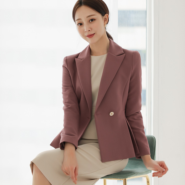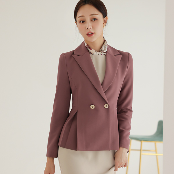 レディー アンチックボタン プリーツ ペプラム 弾力 ジャケット