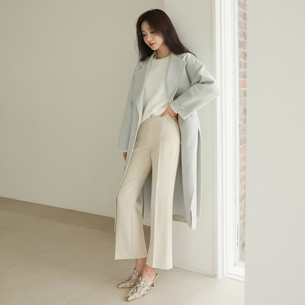 ソフト カラー ベルティード ウール ハンドメード ロングコート