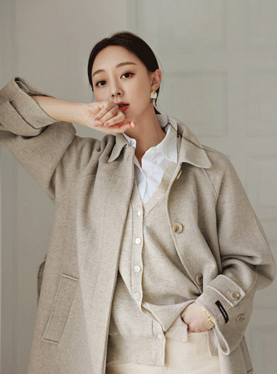 シングルカラー 隠しボタン ハンドメード ウール コート