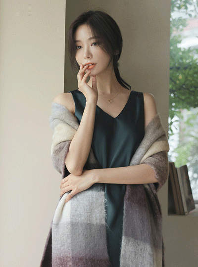 エリーゼ サテン ブイネック シルキー ロングワンピース