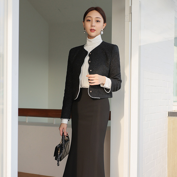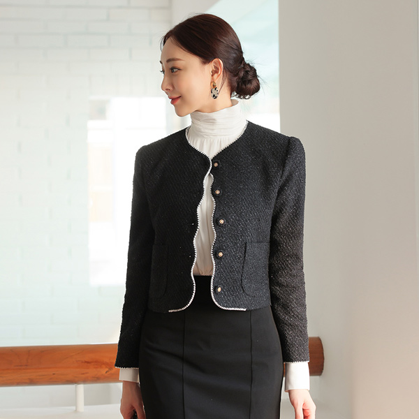黒真珠 裏地 ウエーブ ツイード ウール ジャケット