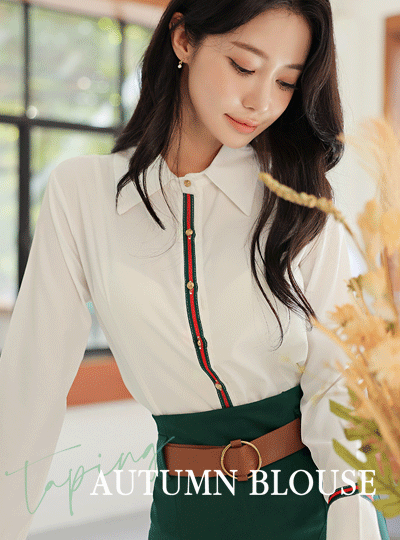 カラー テーピング ゴールドボタン 弾力 シャツ ブラウス