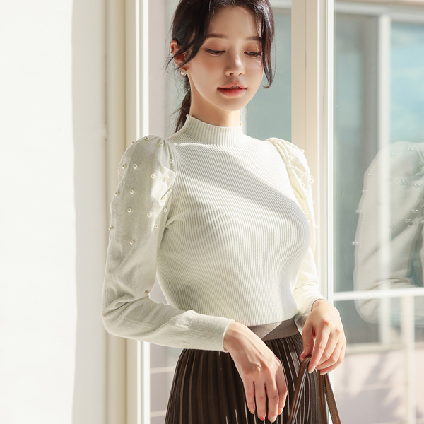 クリーミー ブークレウール 真珠ボタン ノーカラー ショートジャケット