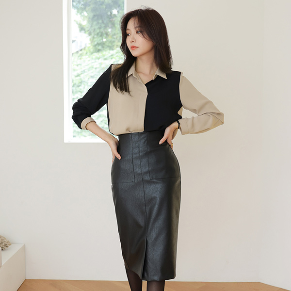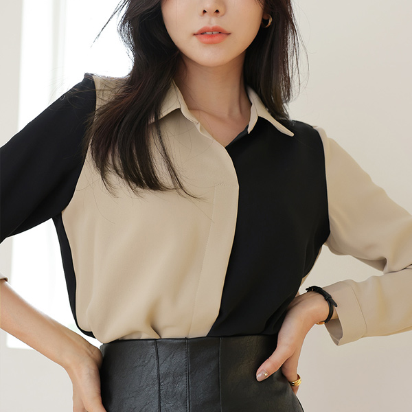 ハーフ&ハーフ オープン カラー シック ブラウス