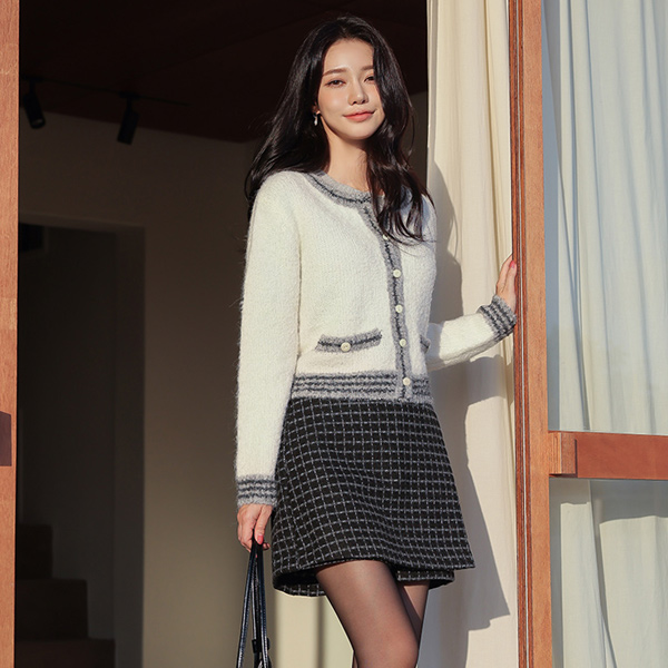 もくもく ソフト ブークレ 配色 ポケット カーディガン