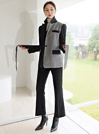 ハーフアンドハーフハウンドトゥースチェックジャケット