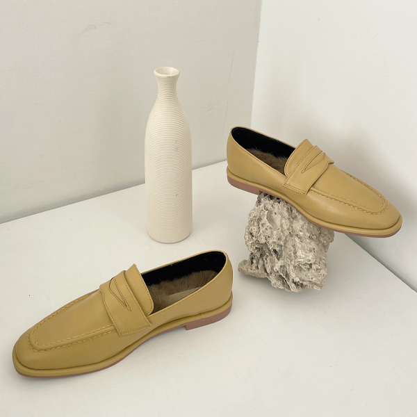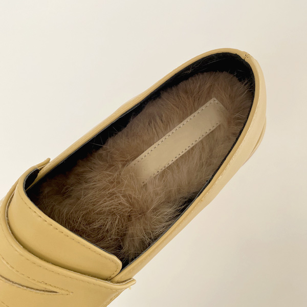 クラシック ラビットファー 裏地 ローファー