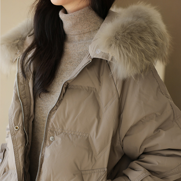 リアル ラクーンファー ダックダウン ハーフ バディング