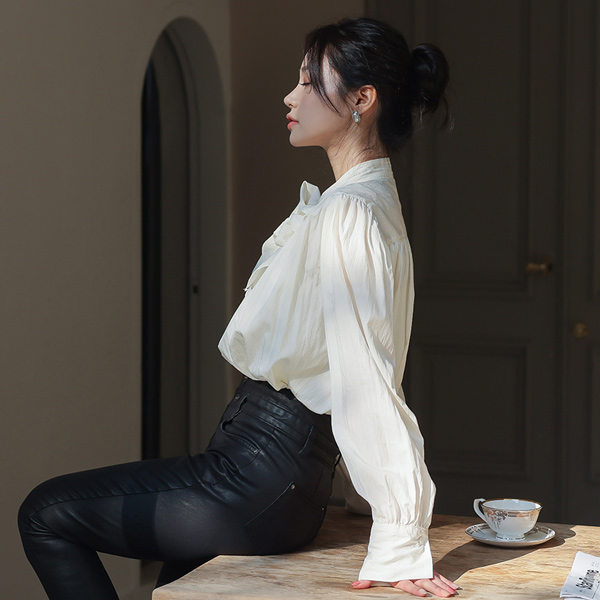 ショルダーシャーリング スカーフ リンクル ブラウス