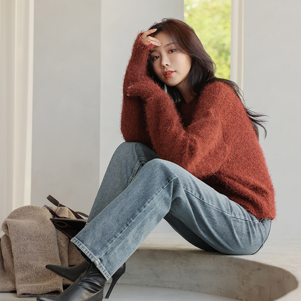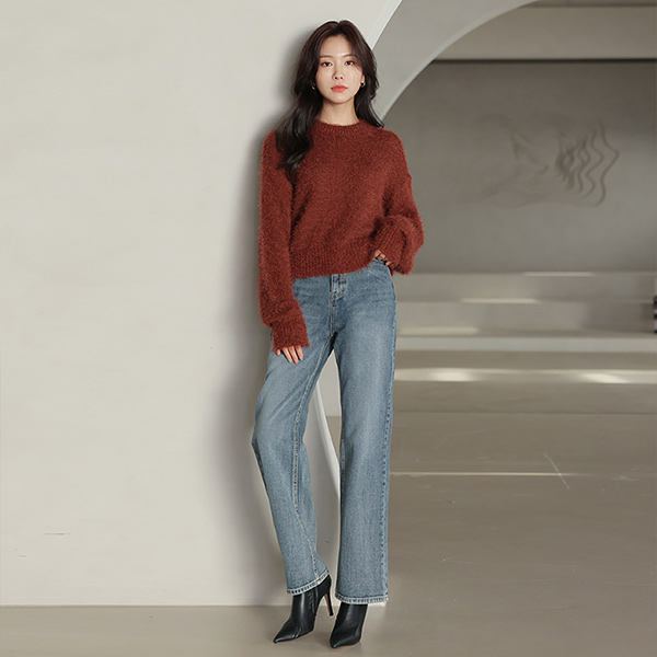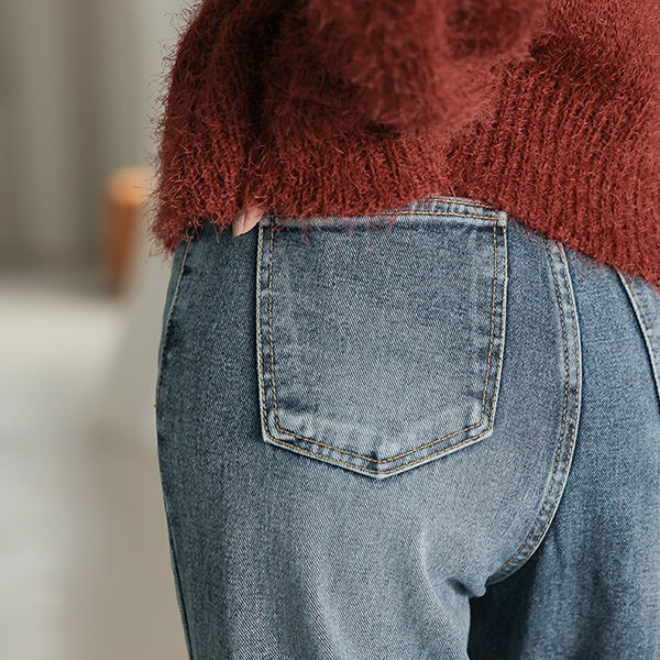 トレンディー ストレートフィット ウォッシング ロング デニムパンツ