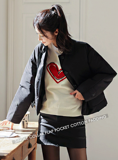 シングルカラー フラップポケット コットン バディング ショートジャケット