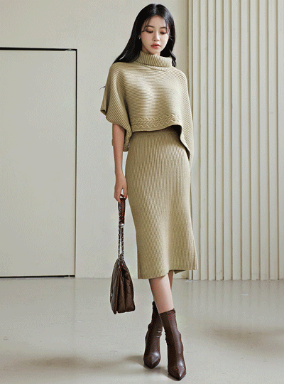 コール天 タートルネック ケープ ニット&スカート SET