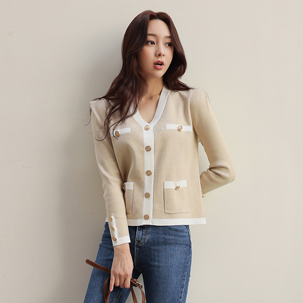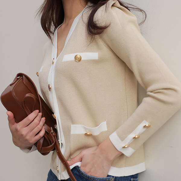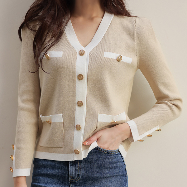 アンティーク ゴールドボタン トリミング エッジショルダーライン カーディガン
